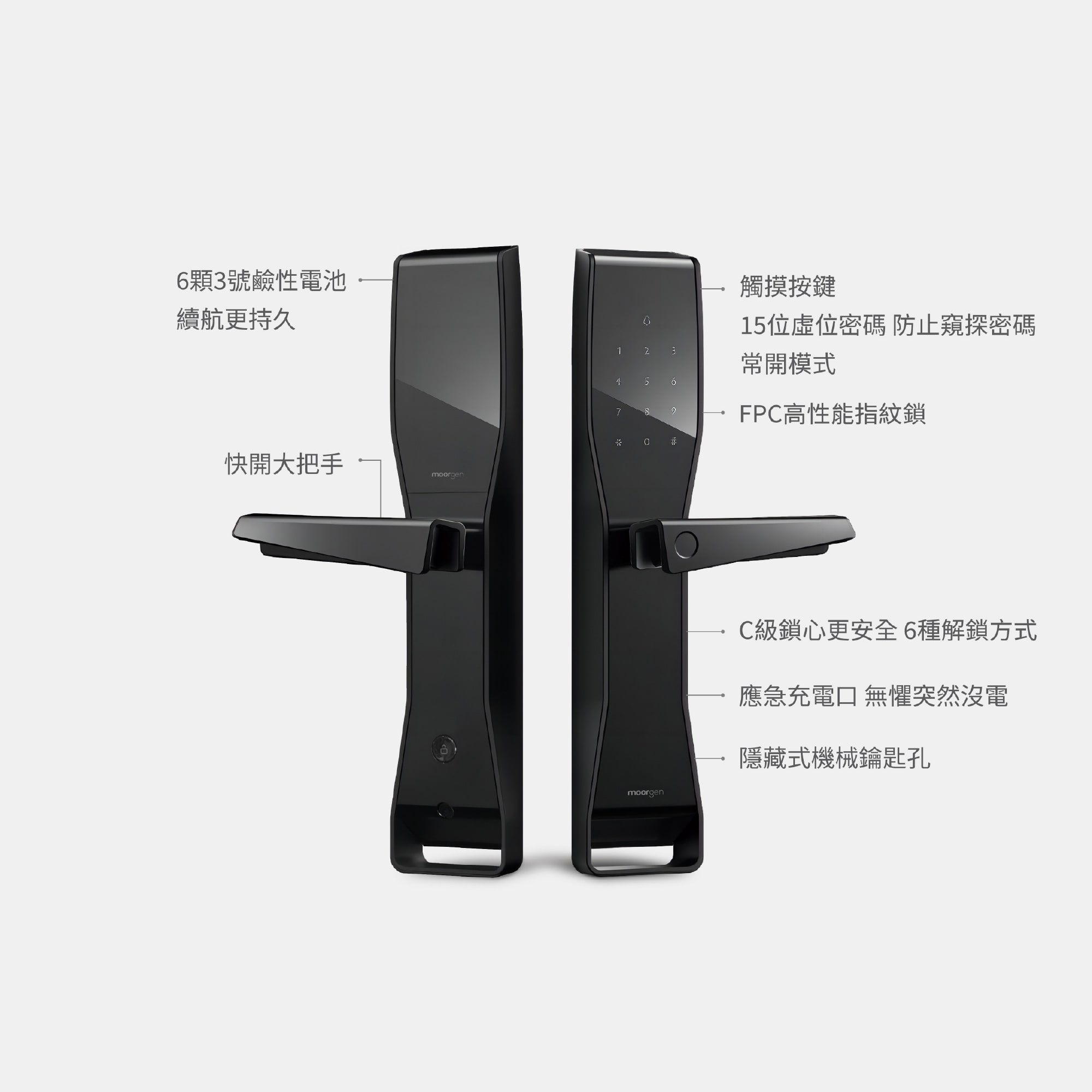 - 鎖體設計:304 不鏽鋼靜音鎖體、3mm 厚背板