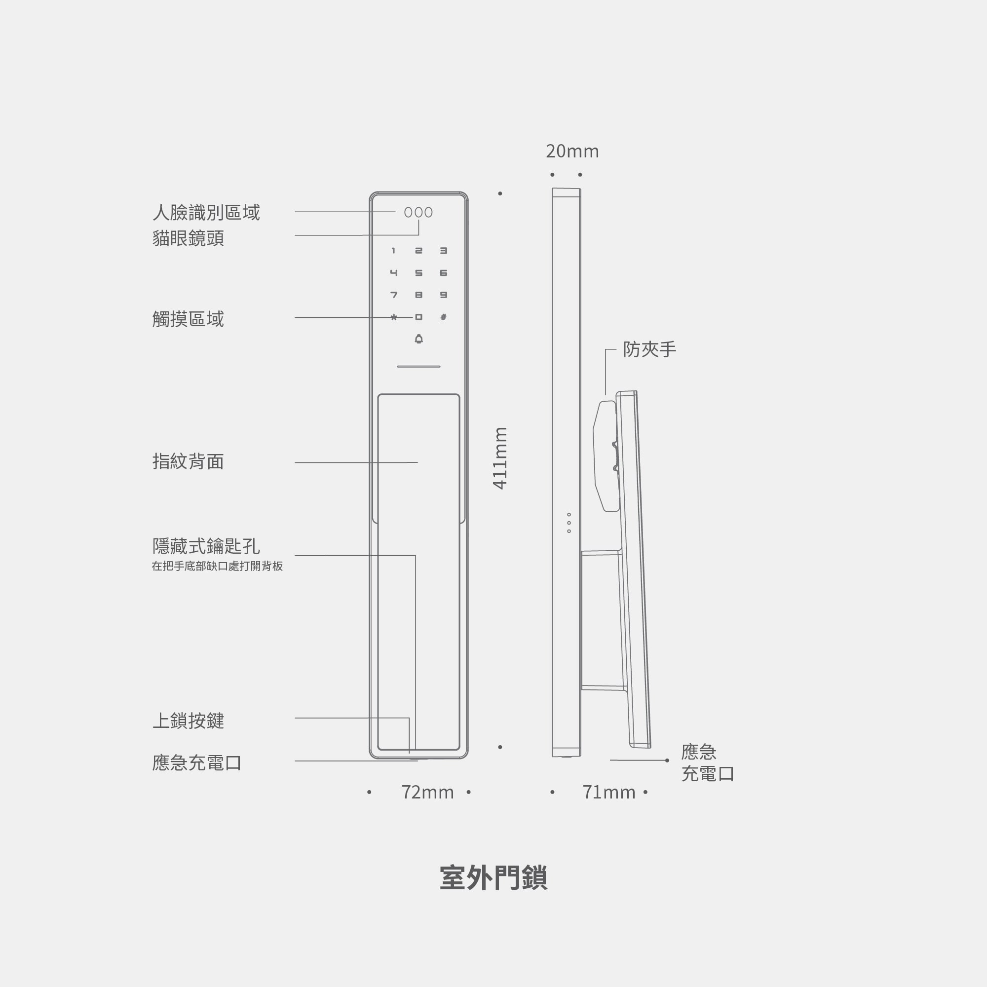 - 登錄容量:人臉 50 組、指紋 50 組、卡片 100 張、密碼 100 組