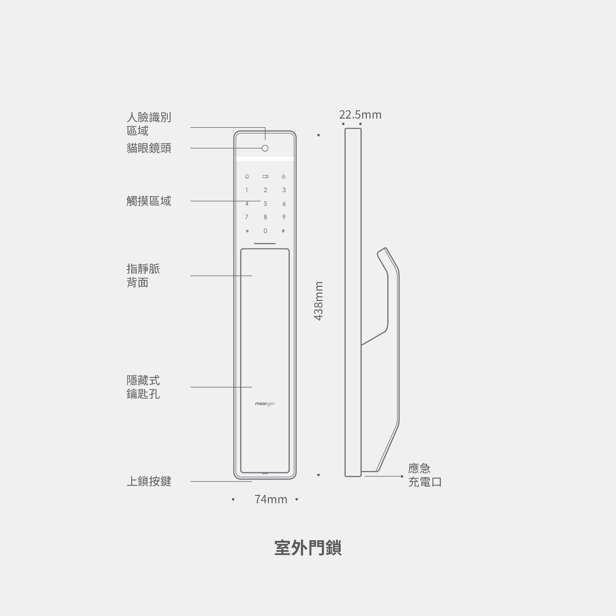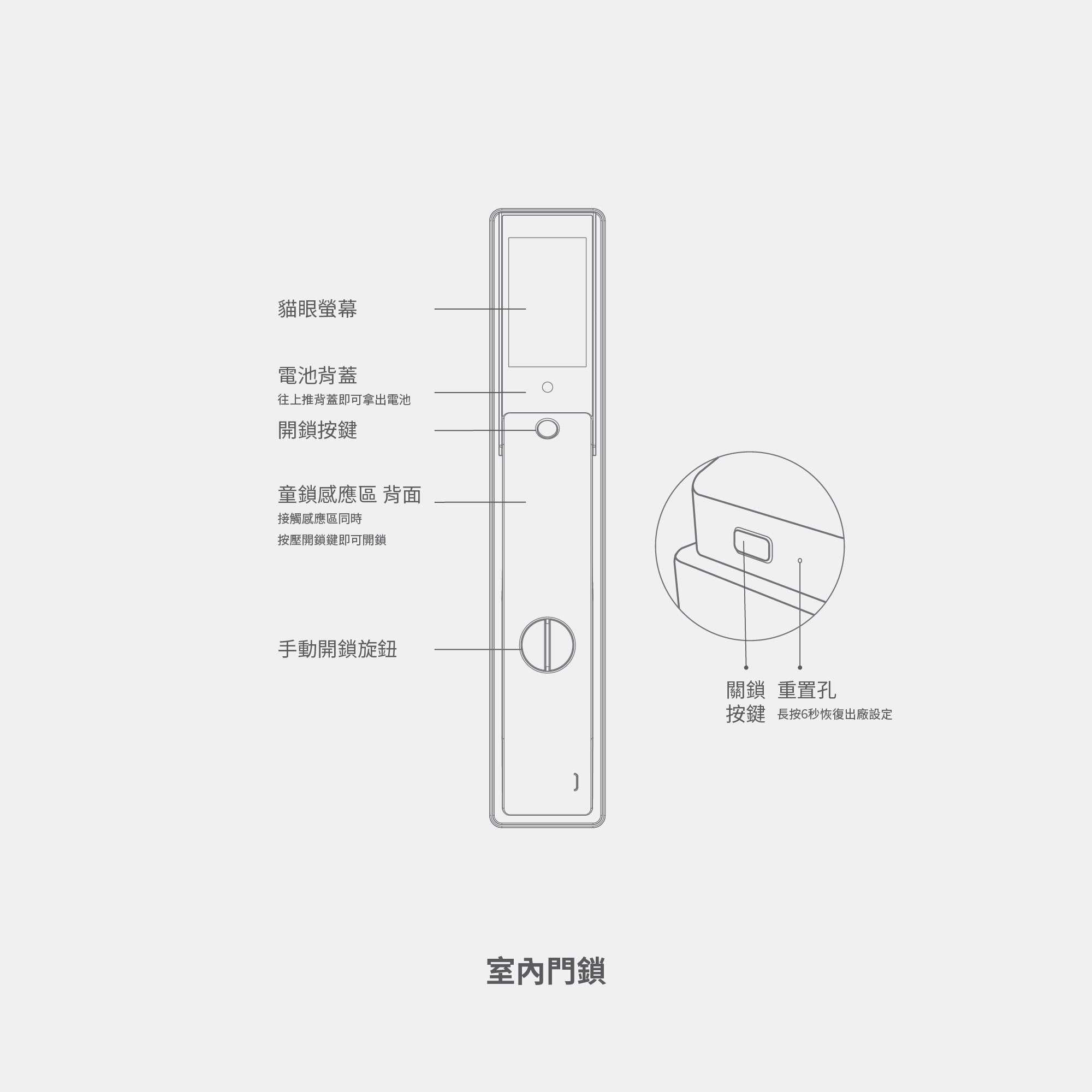 - 配備手動旋鈕與隱藏式鑰匙孔
